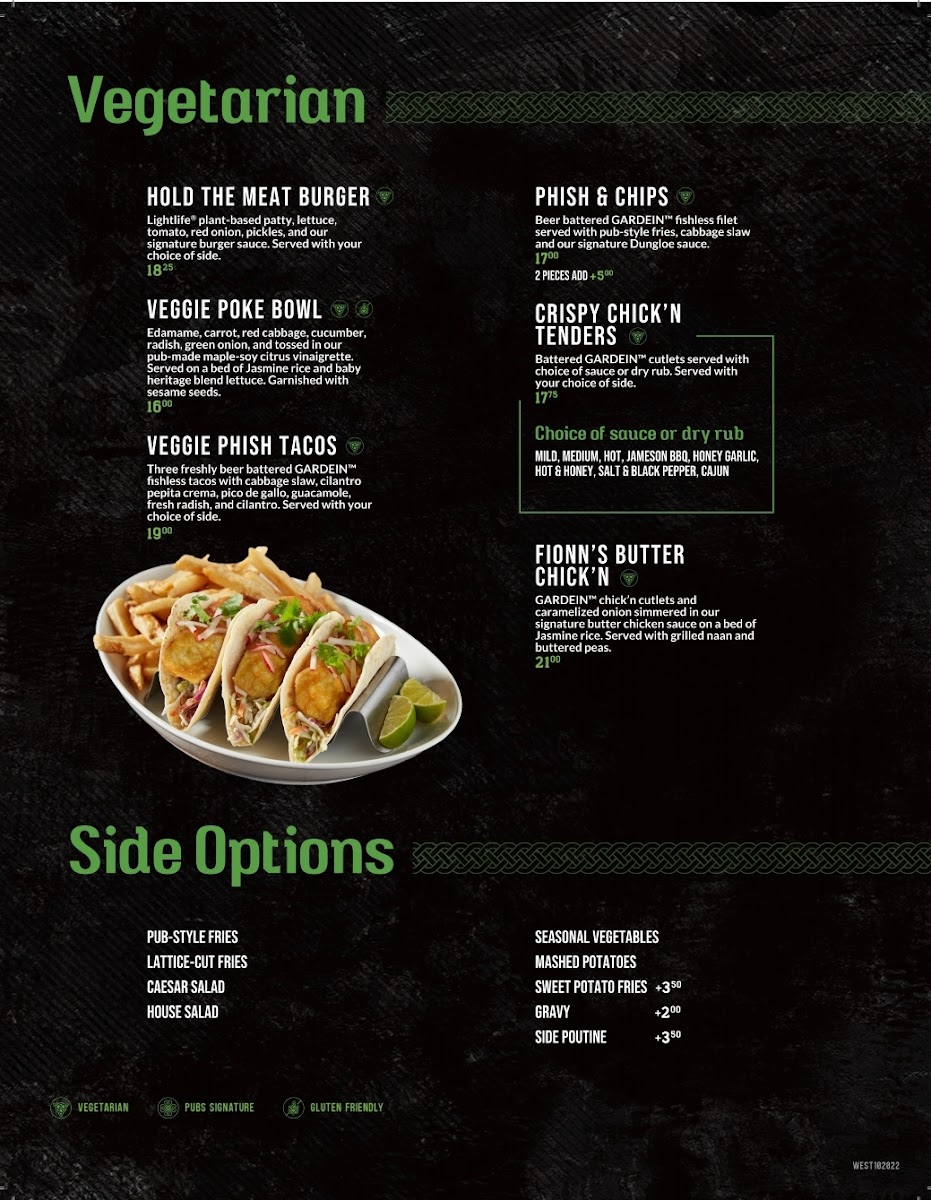 Whether you’re stopping in for a quick lunch, enjoying a leisurely dinner with friends, or catching a game with fellow sports fans, Fionn’s Grant Park stands out as a lively spot inspired by the warmth of Irish hospitality. Come for the food, stay for the friendly service, and leave with fond memories of an evening well spent. Call ahead at +1 431-317-8636 to make your reservation today!